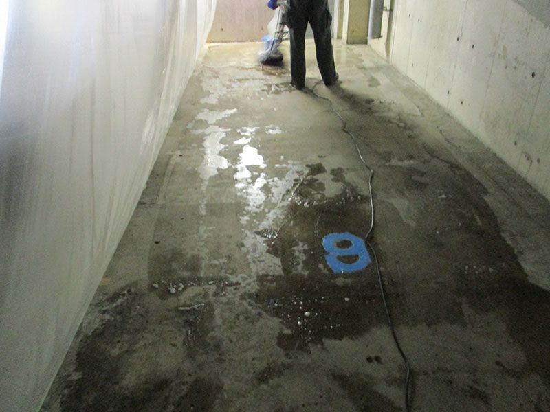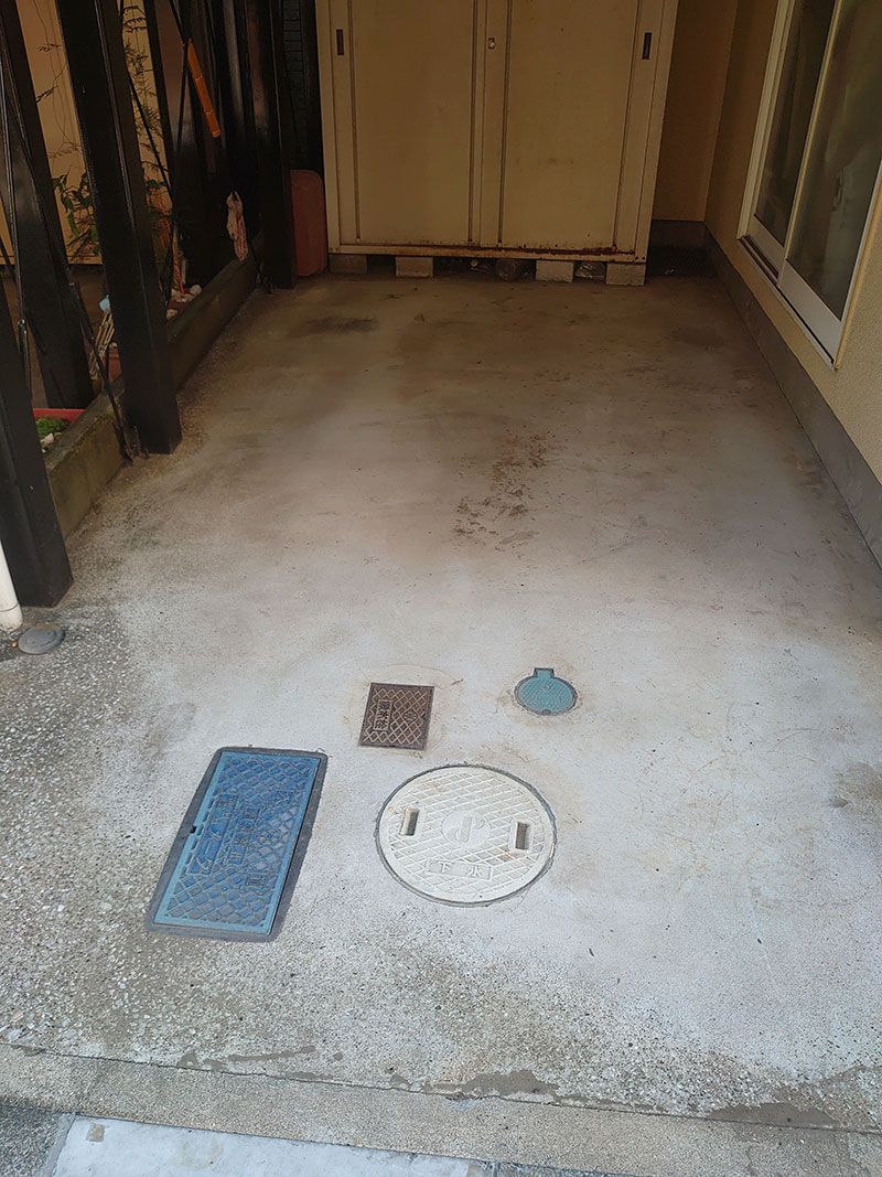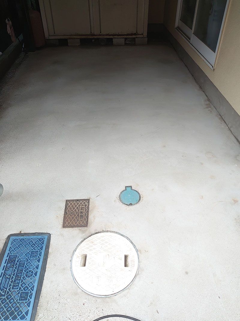 コンクリートの内部に染みている油の除去を行ないシミを抜きました。